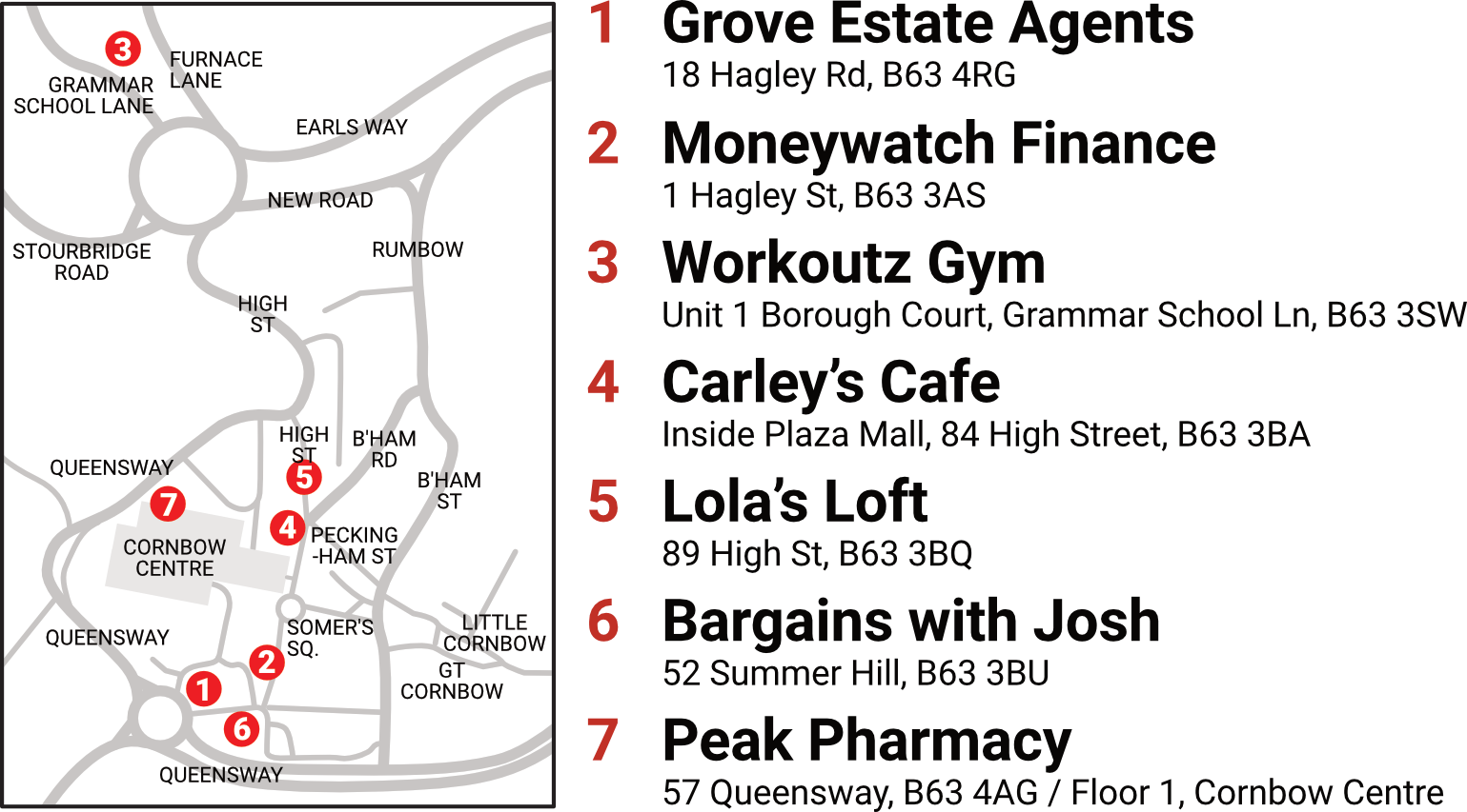 From 1st - 20th December, please drop your donations to the following businesses in Halesowen town centre during their normal opening hours: